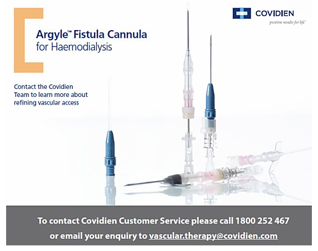 4. A Comparative trial to assess pain and injury associated with arterio-venous fistula (AVF) cannulation using the Argyle Safety Fistula Cannula versus the standard metal AVF needle.Mechelle Seneviratne, Poster presentation RSA ANZSN August 2014